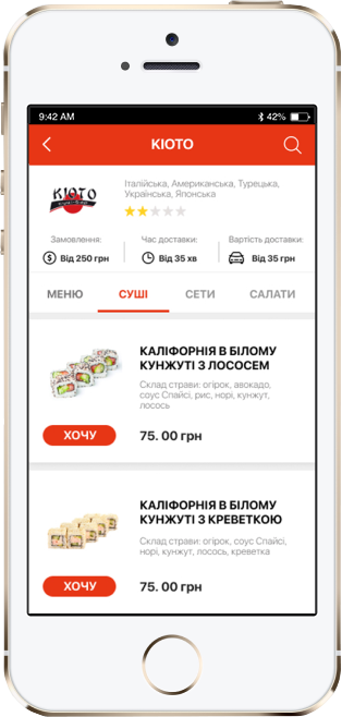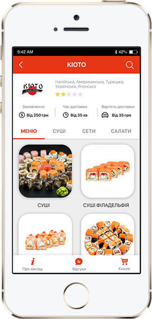 Як щодо смакування телятини у вишнево-гранатовому соусі, медальйони зі свинини в беконі смажені на грилі, курячі брошети в гірчично-медовому маринаді і кунжуті? Ммм, наші завсідники можуть підтвердити, що це не просто гарні назви, але і надзвичайно смачні страви! Що бажаєте сьогодні? Соковиті бургери різної прожарки разом із золотистою картоплею фрі чи вас спокушають суші? Цінителів японської кухні давно чекає «Окінава», особливий аромат «Унагі Філадельфія» та інші. А якщо серце лежить до національних страв, замовляйте ароматний наваристий борщ, смачний домашній розсольник або дивовижну картопельку з м'ясом від ресторанів з українським колоритом. Ну і як без італійських шедеврів? Піца з хрусткими бортиками, сповнена ніжного сиру “Моцарелла”, що так і тане у роті. Замовляйте скоріш, адже наповнення піци залежить лише від ваших уподобань.